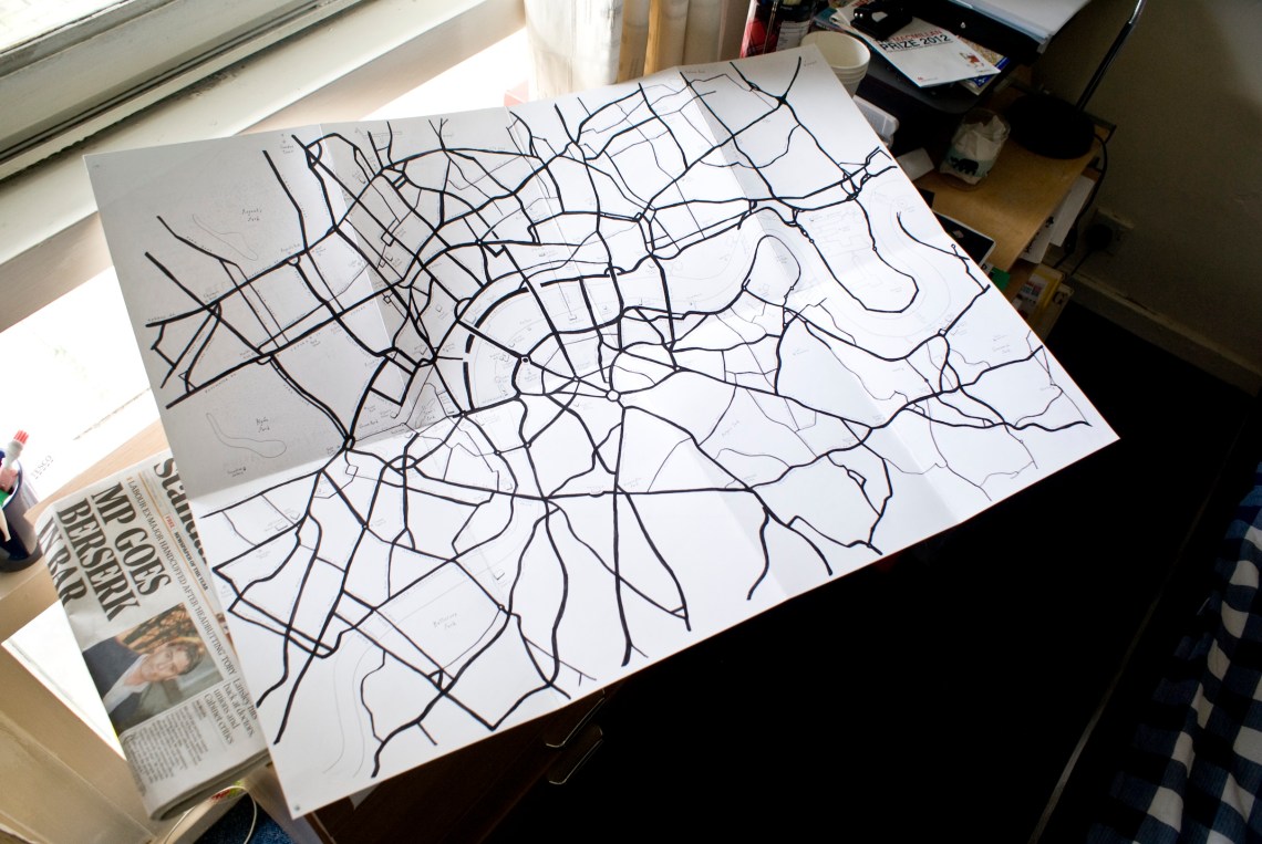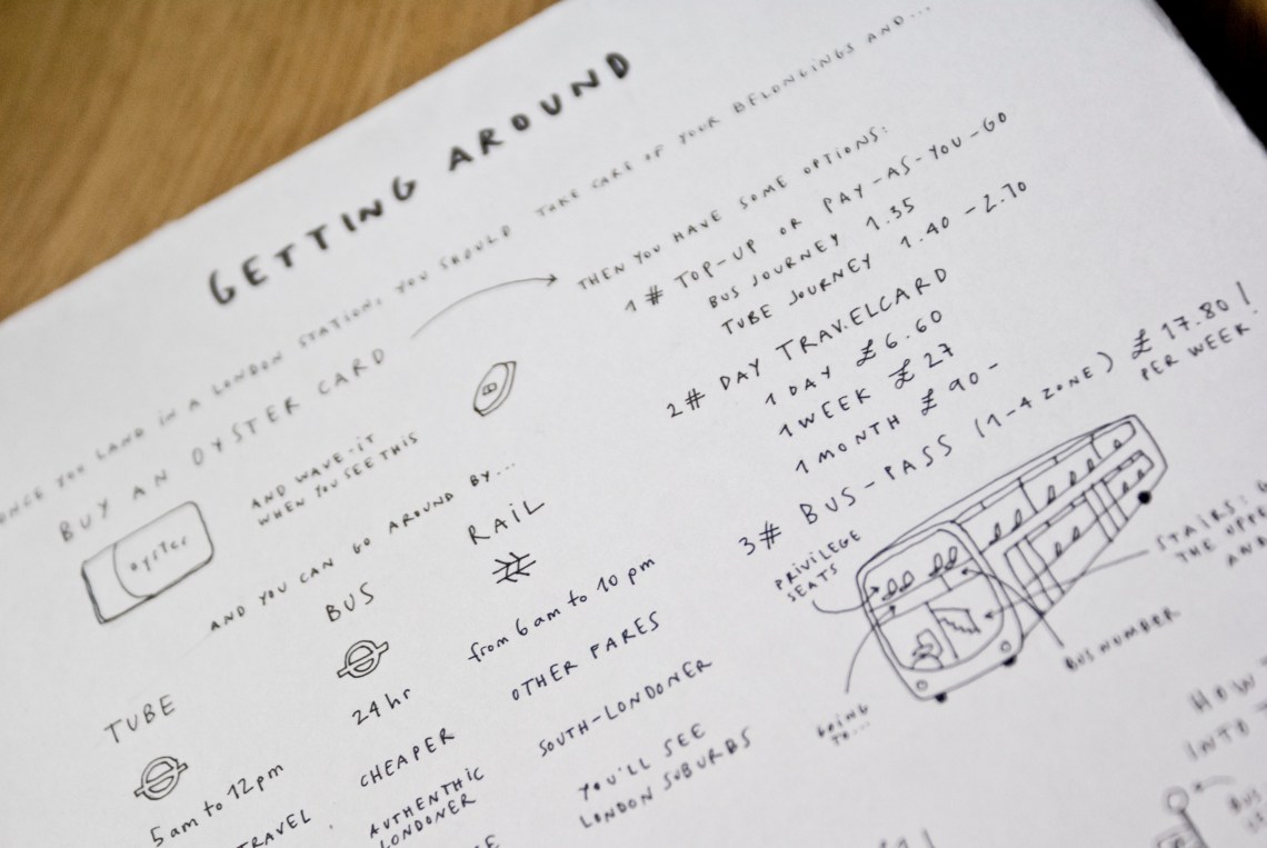 This is my first draft for my London guide project. Lost in London is, by the moment, a black and white guide with some useful and independent information about the city, featuring a big map on the back. Size: 50 x 70 cm opened, A4 when folded. Pencil, ink pen and black markers on white card (300gr) paper.