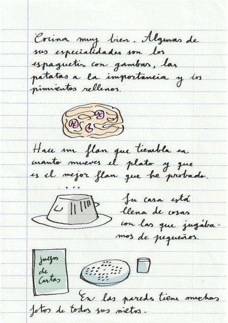 Awesome story, and drawings. I would have never guessed that you were Spanish (why would I? I guess it’s just one of those things people say 😛 ). I’m Spanish as well; seems like all abuelas are good at making spaghetti of some kind, no?