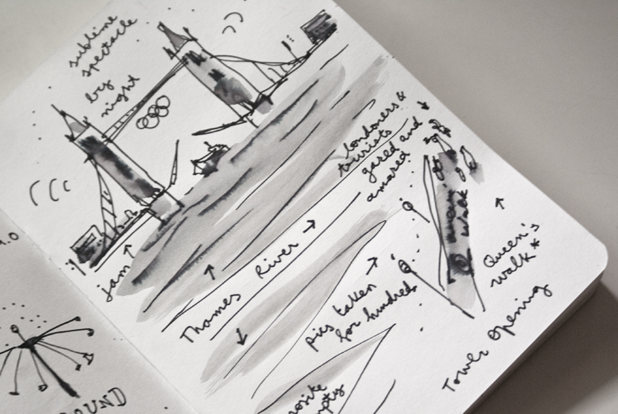 Did you actually use the water from the Thames River to help with those sketches? If so, it’s so meta. 🙂