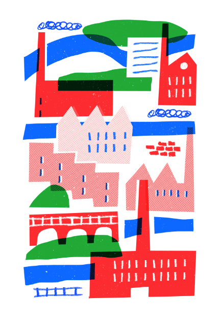 Saltaire, Shipley, Bradford BD17 Three colour A3 risograph print