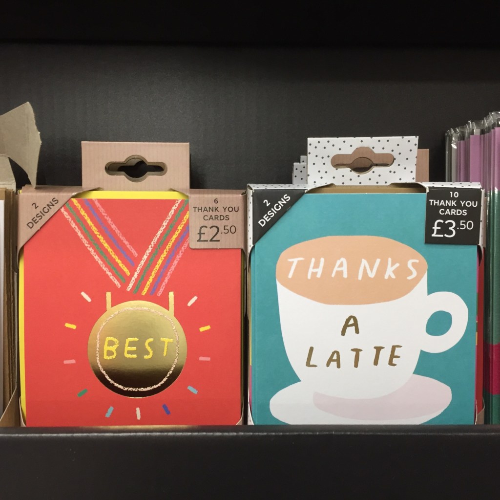 Just on time to say thanks to the teachers, but helpful too for stocking the drawer as these two cards with gold foil handwriting are great to say thank you to anyone really. Only at Marks & Spencer food stores.